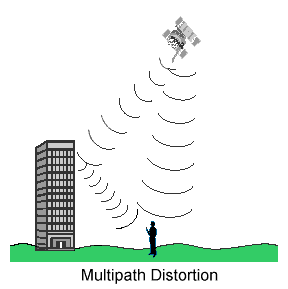 multipath error - the receiving of multiple signals from the same satellite due to reflection off buildings, water bodies, rock faces or other reflective surfaces. Also known as multipath distortion.