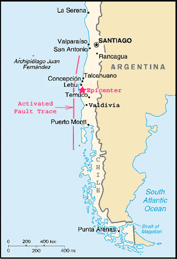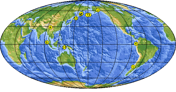 7: Map of the world showing the locations of the 1960 Chilean earthquake