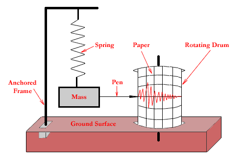 2: Conceptual representation of a simple vertical motion seismograph.