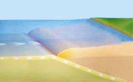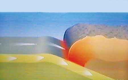 Figure 3: An Oceanic Plate (left) shown descending beneath a thicker Continental Plate (right)