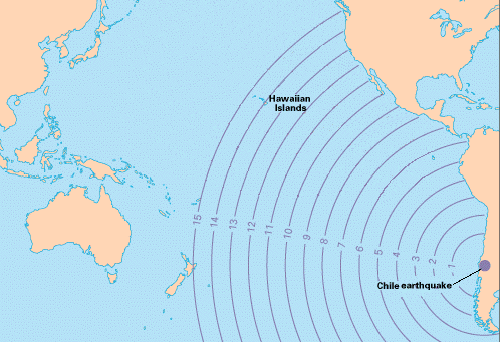 of 100 Km would travel at over 900 km/hr in deep water. As a marked
