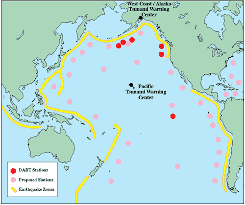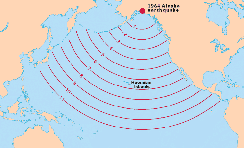 Course Outline This course on "Tsunamis" is presented as a complement to course G175 on "Earthquakes: Basic Principles" for the benefit of those students who want to learn more about this particularly devastating natural phenomenon. Course G175, however, is not a pre-requisite for taking this course. This course is a stand-alone presentation that can be taken independently of course G175. In this course you will learn that any number of large-scale, short duration disturbances of the ocean floor can generate tsunamis. Most frequently, however, it is the strong, shallow submarine earthquakes that are the most likely triggering mechanism of these monstrous sea waves. Following a brief explanation of the origin of the word, you will learn how to describe the geometry and general behavior of water waves and what distinguishes wind-generated waves from tsunamis. The geologic concept of plate tectonics is then presented, which explains that the earth's crust is divided into a number of rigid plates that interact with one another causing seismic activity along their boundaries. In fact, it is the interaction between the oceanic and continental plates that most frequently trigger the large seismic events that deform the ocean floor and spawn the most devastating tsunamis. A step by step illustration of this process is presented along with an explanation of how the initial tsunami wave splits into two waves that start traveling in opposite directions. The wave that travels out to the deep ocean is known as the distant tsunami, while the other wave that travels towards the nearby coast is referred to as the local tsunami. The wave transformations that occur at shallow oceanic depths are explained as they control the ensuing wave run-up that occurs all along the coastline. The equations used to compute the velocity of tsunamis are presented in an appendix at the end of the course. The characteristics of the most notable tsunamis that occurred since 1900 are presented and discussed. Experiences gained from the study of these events led the US National Oceanic and Atmospheric Administration (NOAA) to develop and deploy several tsunami-warning stations in the Pacific Ocean in the mid-1990s. When data collected from these stations confirm the detection of a tsunami, scientists begin immediately to predict the propagation course and velocity of the waves. Warnings are then issued to the most susceptible areas likely to be affected. Following the devastating tsunami of December 26, 2004, several additional tsunami detection stations have been added to the existing network. Finally, other mechanisms that could also trigger tsunamis are presented and explained. Examples from the historical and geological records are presented as evidence that tsunamis have occurred in the past and are therefore one of the recurring and potent geologic hazards of our planet. A glossary