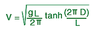 Alternatively, in parts of the ocean where water depth (D) is say greater than one half of the wavelength (L), the equation reduces to: