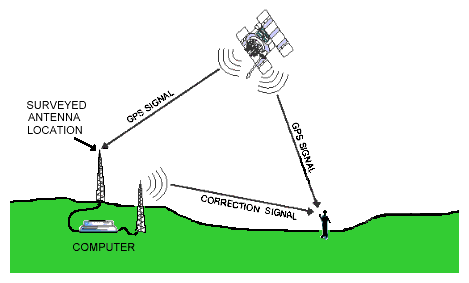 Differential GPS (DGPS) - the use of at least one fixed GPS receiver at a known location in order to calculate the error in GPS position.