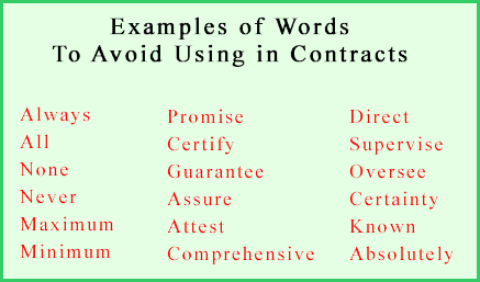 never, etc." should be avoided in contracts.