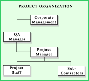 An organization chart is developed for every project. The position and role of QA personnel should be clearly delineated and the persons performing QA functions should have sufficient authority and freedom to identify problems and initiate corrective action in a timely manner. To maintain his/her independence from the project, the QA manager should report directly to corporate management.If your organization uses outside suppliers and/or contractors, the QA chain of command must be extended into their operations. The QA process involves everyone and transcends corporate divisions and organizational boundaries. Names of people should be included on the organization chart. When staffing changes are made, the chart should be updated.