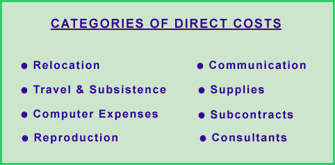 The following figure lists the types of overhead expenses under each of the categories listed above.